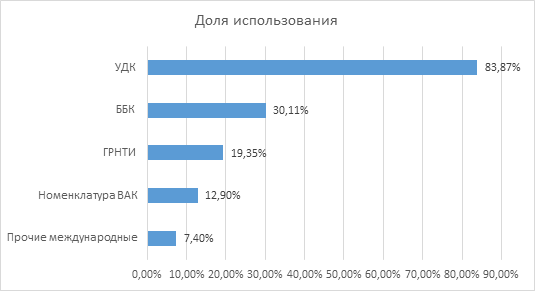 Рис. 1. Доля использования классификационных систем для рубрикации фондов