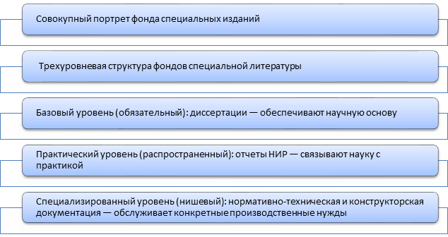 Совокупный портрет фонда специальных изданий позволяет говорить о том, что сформировалась трехуровневая структура фондов специальной литературы (рис. 2):