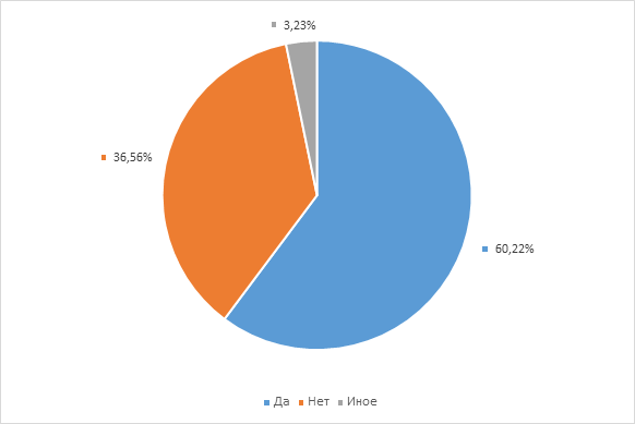 Подавляющее большинство респондентов (60,22 %) испытывают потребность в системном информировании о ресурсах ГПНТБ России. Это сигнал для библиотеки: необходимо развивать и структурировать свои информационные каналы. Однако значительная доля ответивших «нет» (36,56 %) указывает на то, что подход к информированию, его содержание или целевая аудитория требуют более глубокого анализа и, возможно, сегментации (рис. 3).