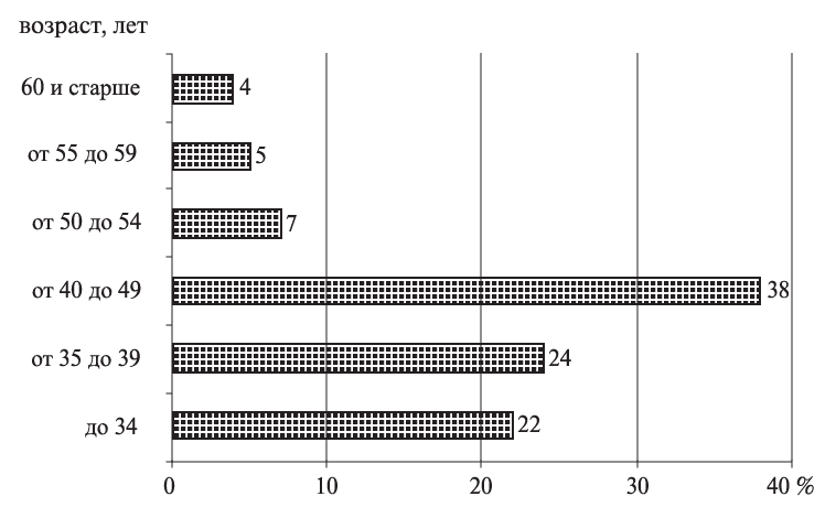 Fig. 1. Age structure of doctoral students of St. Petersburg in 2022